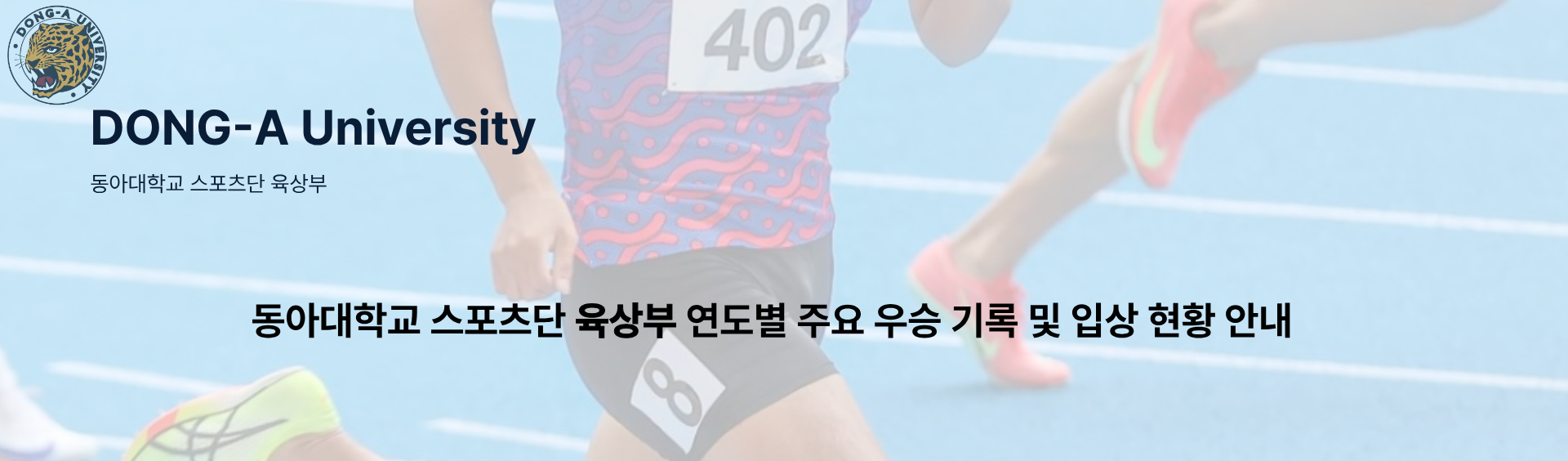| 육상 | 339 | 제1회 한국대학육상연맹회장배 전국대학육상경기대회 | 2025.04 | 1위 | 윤여준 | 황미영 |